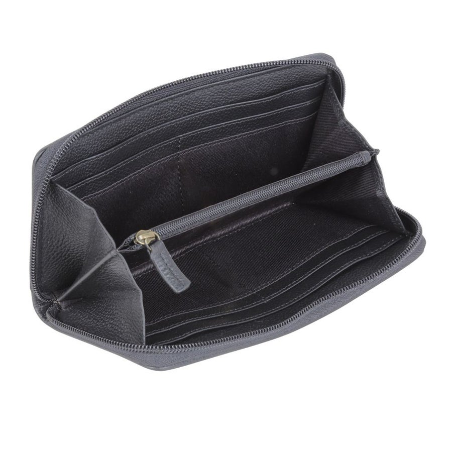- Inside features a zipper compartment, open compartment and plenty of slots for credit cards/ID.