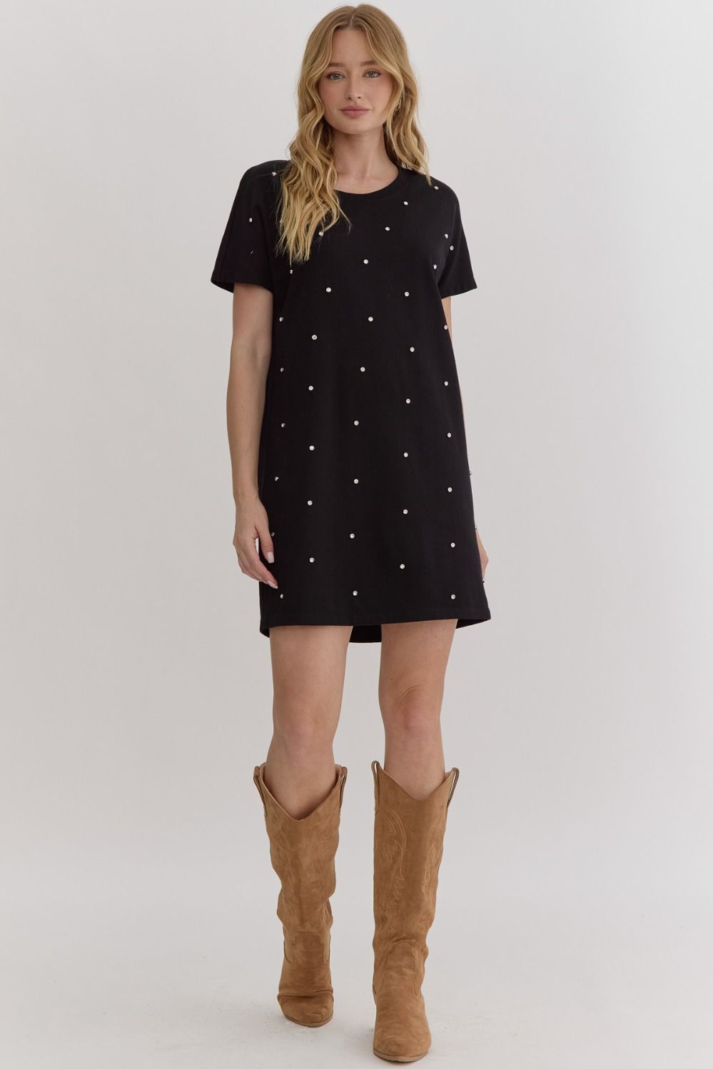 Black Short Sleeve Dress Stud Details