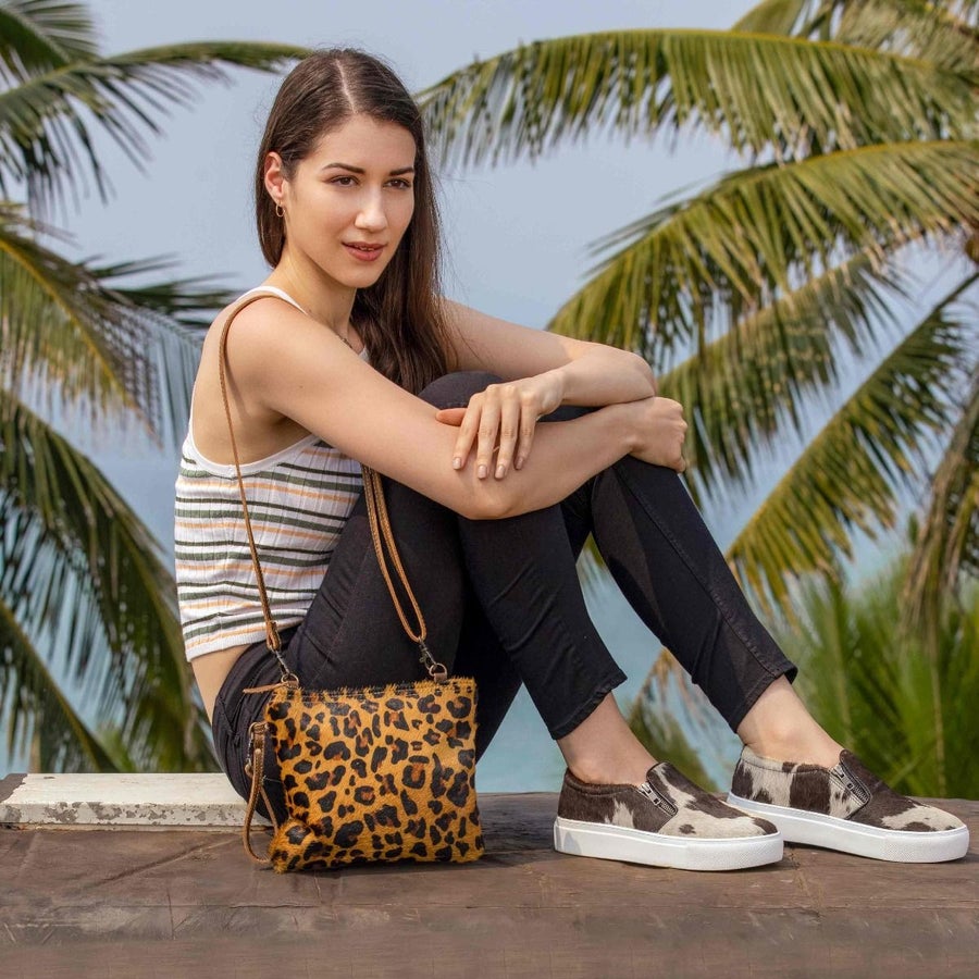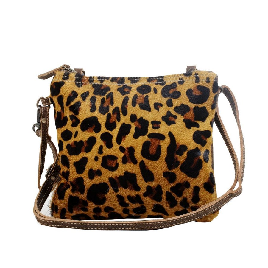 Fun leopard print cowhide crossbody purse! This bag is the perfect size to carry all your essentials without getting too heavy!