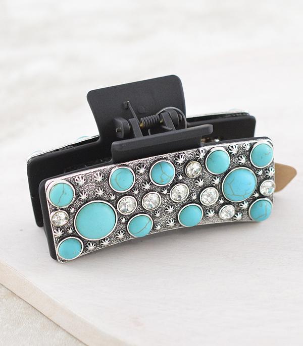 Fun western black claw clip with faux turquoise stones and clear rhinestones
