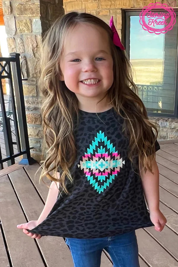 Your kiddo will roar into style with this Leopard Out Loud Kids Graphic Tee —a black leopard tee featuring an eye-catching turquoise, cream and pink Aztec design. Not just bold and stylish, but also super comfy! Snag this purrfect look while it's available!