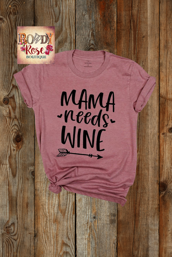 Light hearted and funny "Mama Needs Wine" mauve unisex tee!