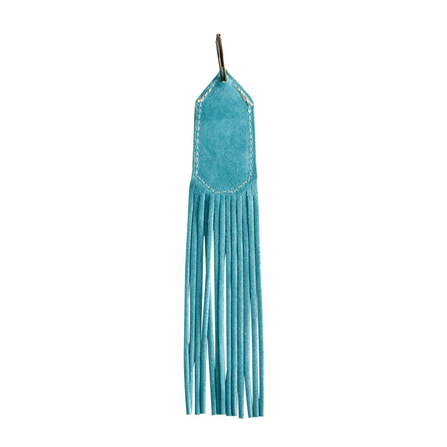 Beautiful leather key chain with a pink floral tooled design and turquoise fringe.