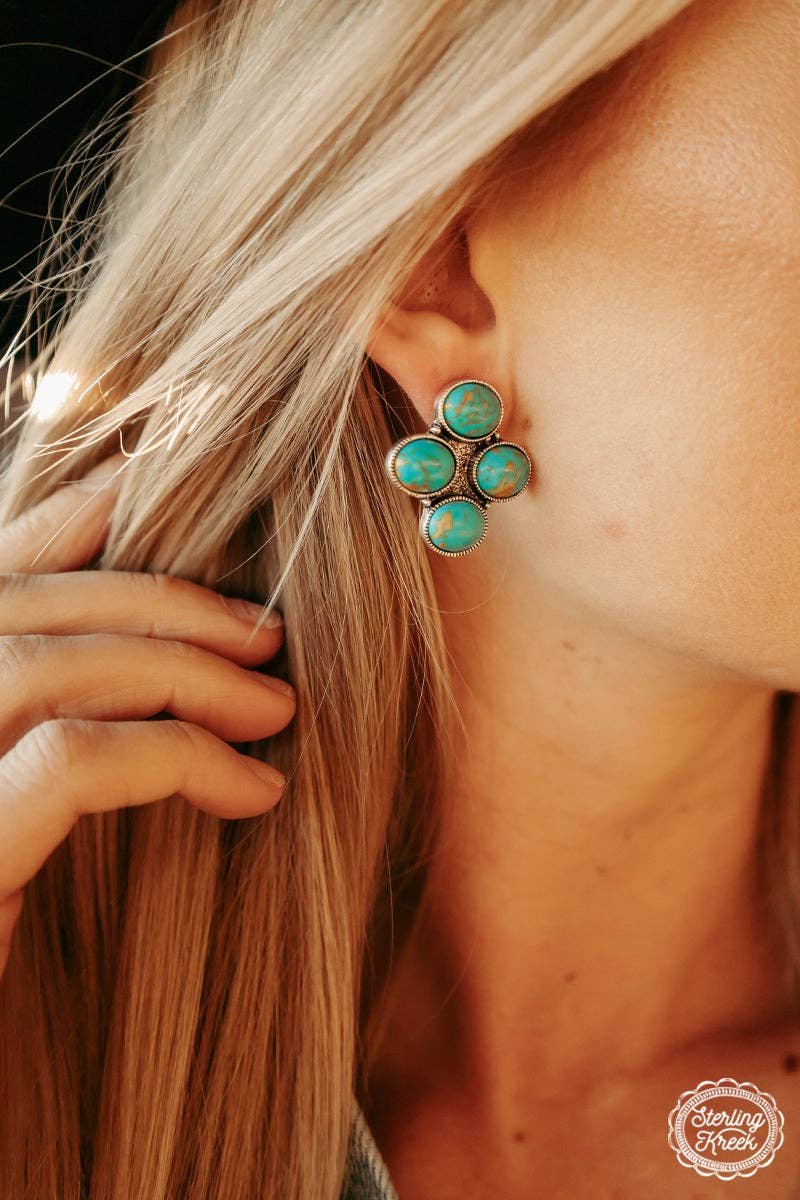 Get ready to wrangle some style with our Rodeo Roots set! Stud earrings, featuring 4 turquoise stones. Yee-haw!