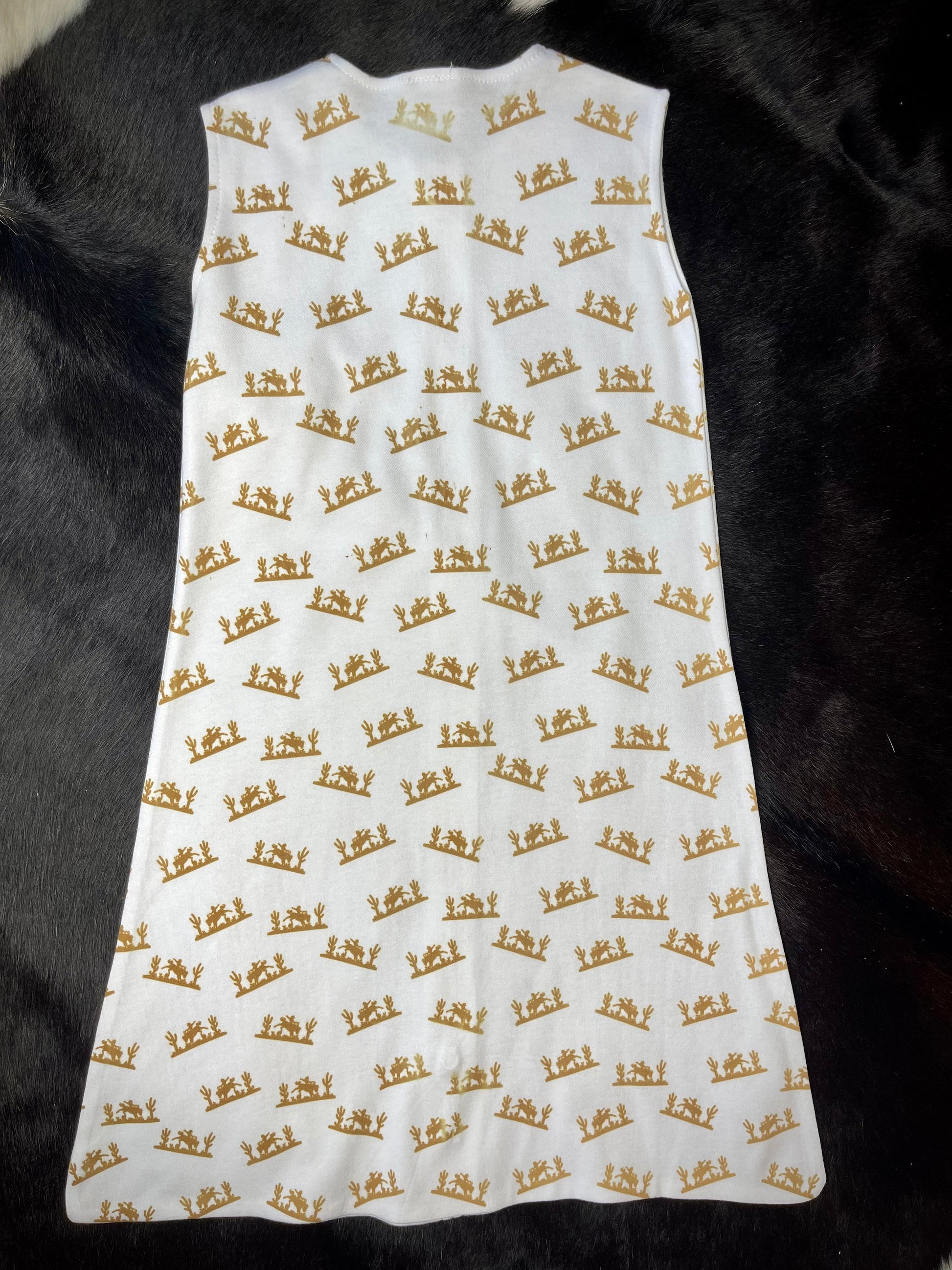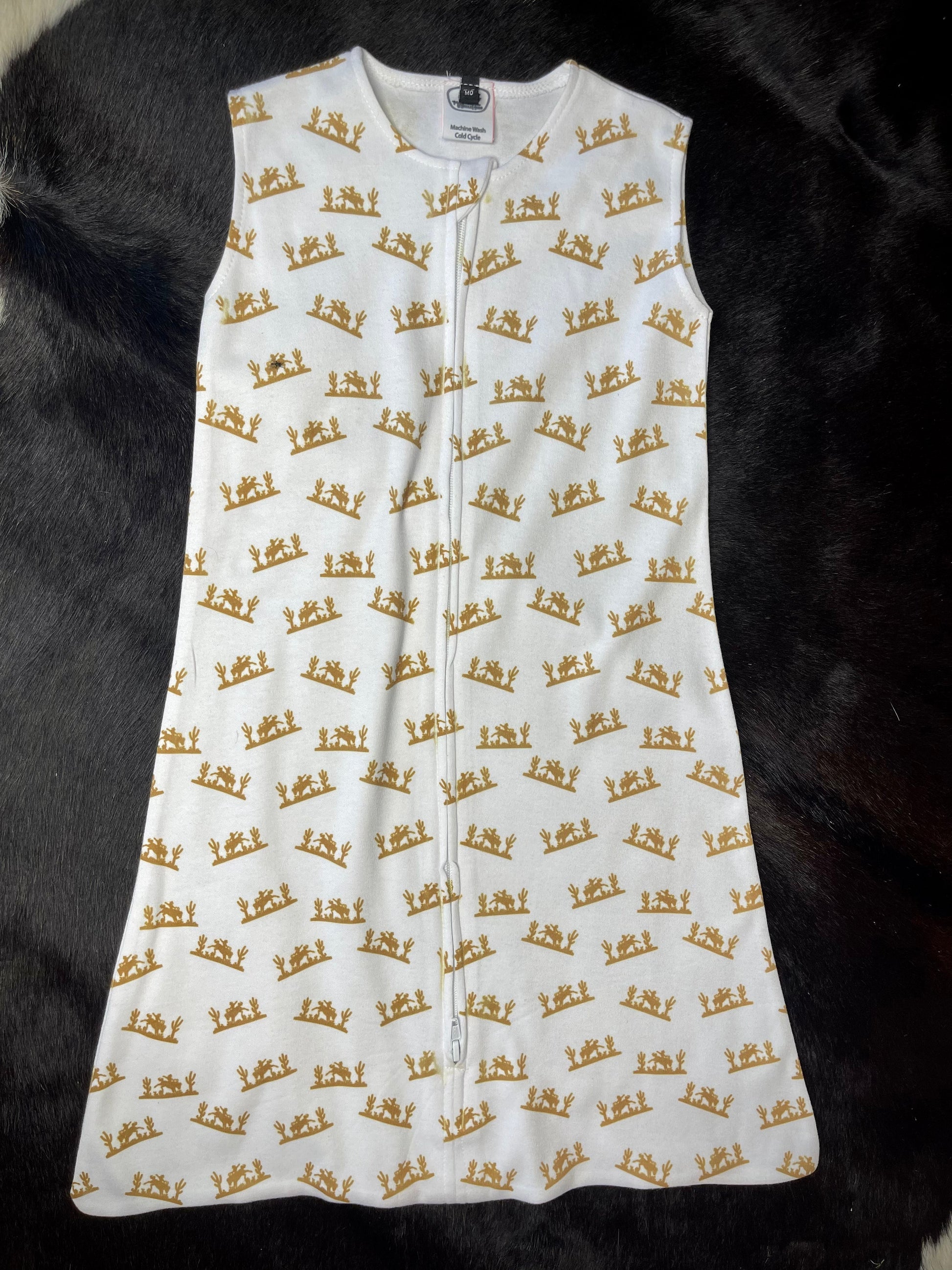 Super soft and comfortable baby sleep sack featuring a southwest design with cactus, and a cowboy riding a bucking horse! Perfect for a little cowboy or cowgirl! This sleep sack is wider towards the bottom to allow baby to move comfortably. The zipper zips from the top to the bottom to allow for easy diaper changes. If you don't need to take the sleep sack off you can unzip it part way from the bottom to do a quick diaper change. The zipper also features a zipper protector at the collar to ensure comfort for baby so it does not rub. Light weight material, it is perfect for warmer weather but can be layered if needed for warmth.