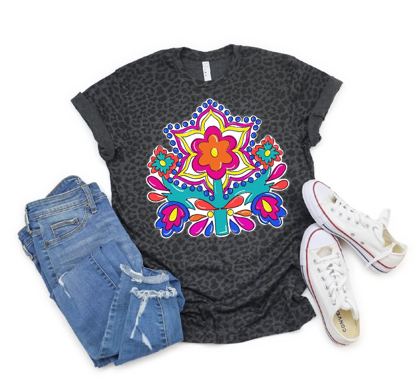 The design is printed directly onto the tee. Black leopard, unisex fit. These shirts are pre-shrunk.